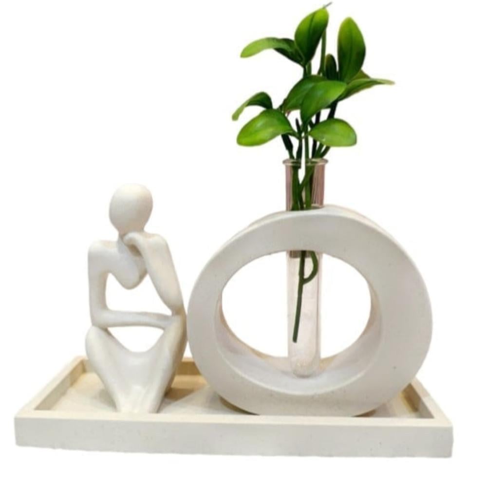 وصينيه مستطيله الشكل مع حامل زهور دائري ( بدون الزهور والأنبوب )
