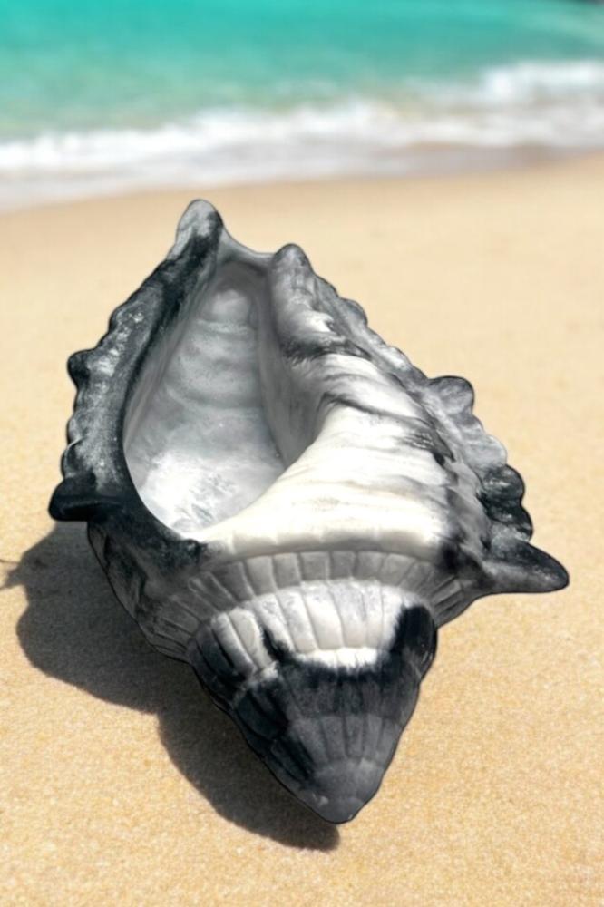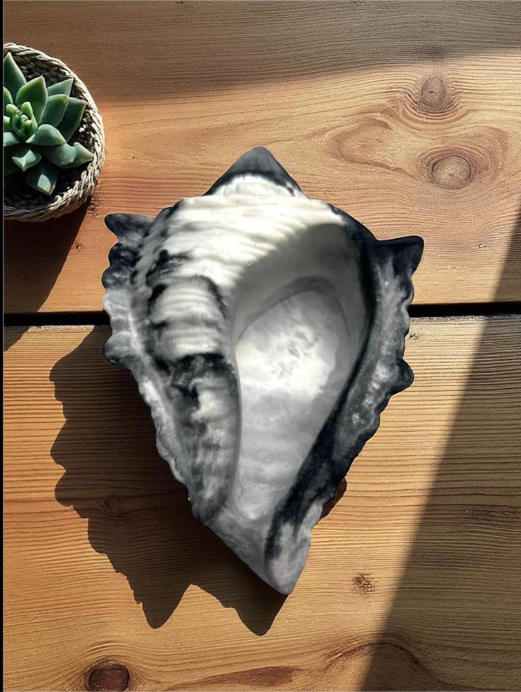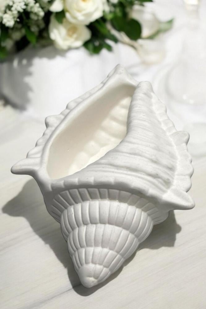 تحفه ومجسم على شكل صدفه مصنوعه من الكونكريت لها استعمالات متعدده ( صب الشموع ، حامل اكسسورات ، تحفه ،…. )الالوان حسب الطلب