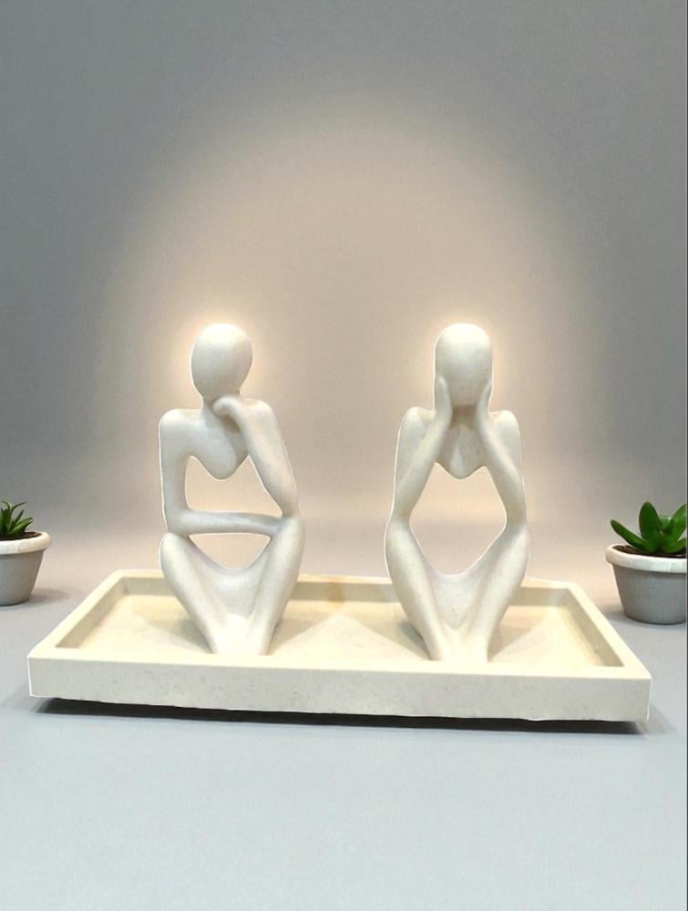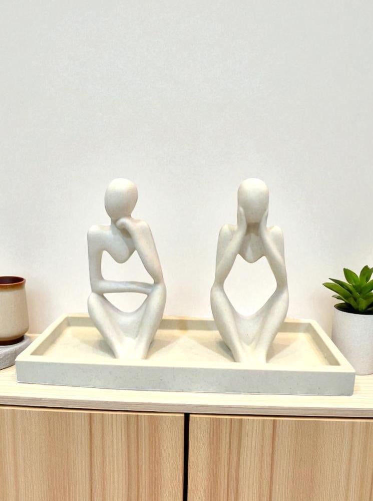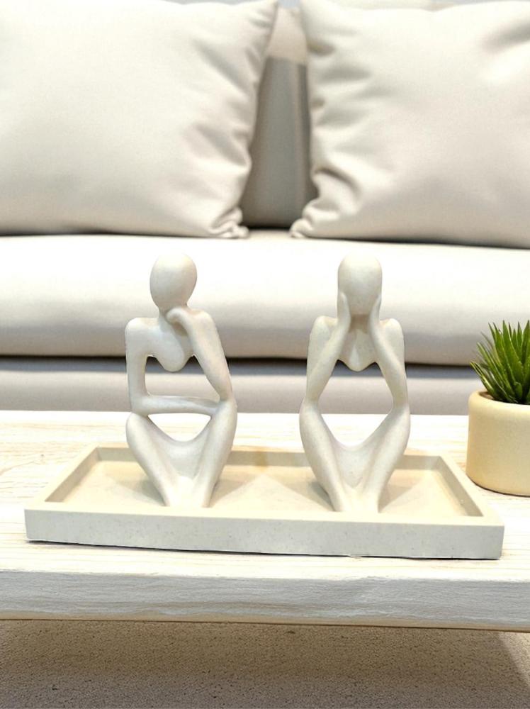 طقم طاوله فخم ومميز من الكونكريت يتكون من 3قطع (صينيه مستطيله الشكل الطول 22 سم / العرض 8.5 سم ،2مجسم تراجيدي من الكونكريت ).