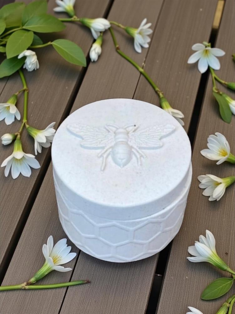 *أضف لمسة من الرقي إلى ديكورك!* علبة كونكريت دائرية الشكل مزخرفة بتصميم خلية نحل فريد. مثالية لحفظ المجوهرات، المكسرات، الحلويات، أو حتى كحامل لشمعة صغيرة.