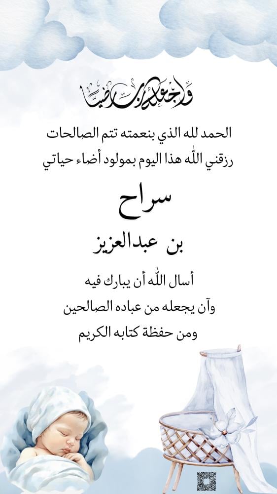 - صيغة بشاره تناسبك وكتابة أسماء المولود / المولوده مع امكانية اضافه اسم الاب