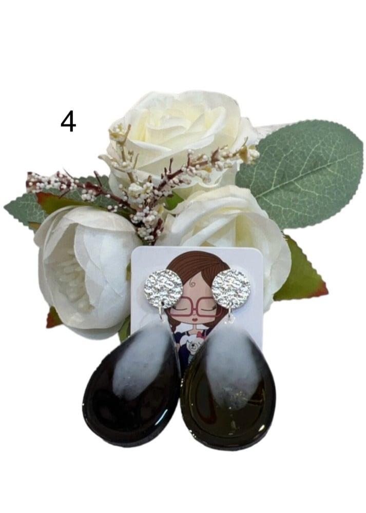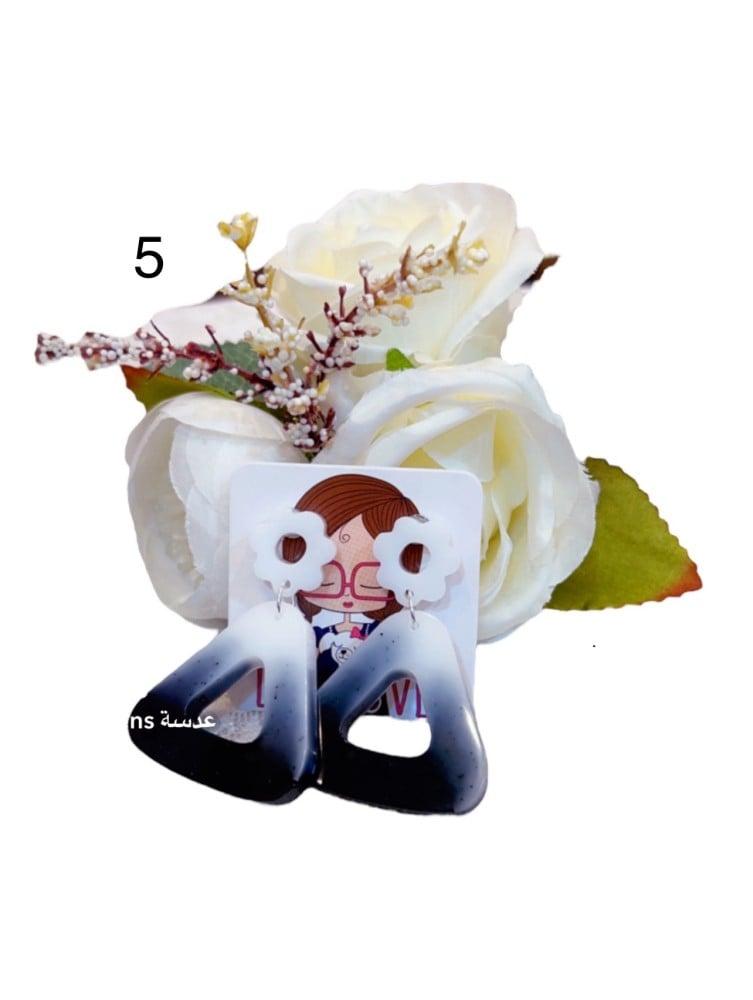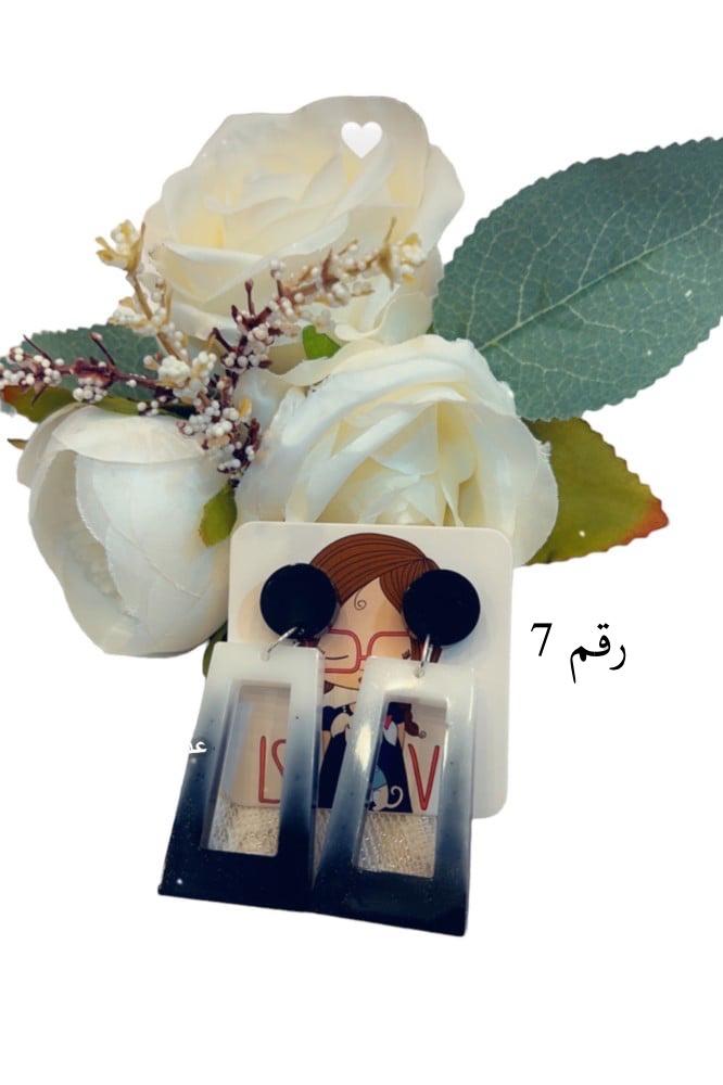 اقراط من الريزن باللون الابيض والاسود باشكال متعدده والالوان والاظافات حسب الطلب حسب الطلب